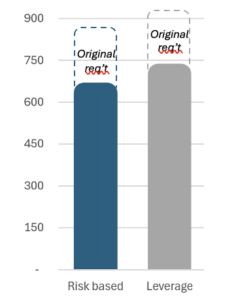 Figure 3: Current capital dollars for risk-based requirement and estimated for leverage requirement