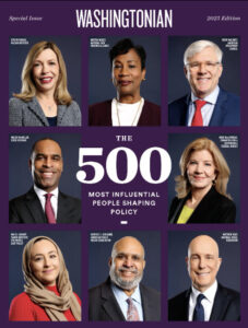Influencing people in power and getting policy outcomes is what it’s all about in Washington. That’s why private companies spend billions of dollars every year on lobbyists and trade groups, all of which claim to be influential. However, there are few independent validators of influence in Washington, but the Washingtonian Magazine is one of them. Every year it conducts a comprehensive review of the many thousands of people trying to influence policy and they pick just the 500 most influential.
