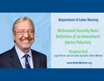 Better Markets’ Steve Hall at a U.S. Department of Labor public hearing on proposed rules to protect the retirement savings of millions of Americans. You can learn more about the event here.