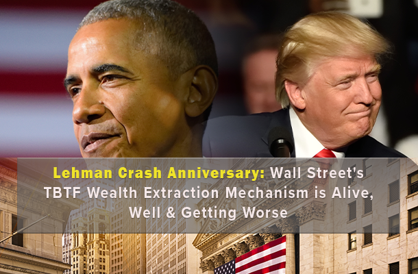 Wall Street’s biggest too-big-to-fail banks, which were all bailed out by taxpayers in 2008 and only exist today because of those bailouts, are bigger, more dangerous and anti-competitive than ever. But even worse than all that, too-big-to-fail systemically important financial institutions have fundamentally changed finance into a wealth extraction mechanism for the few rather than a wealth creation system for the many.
